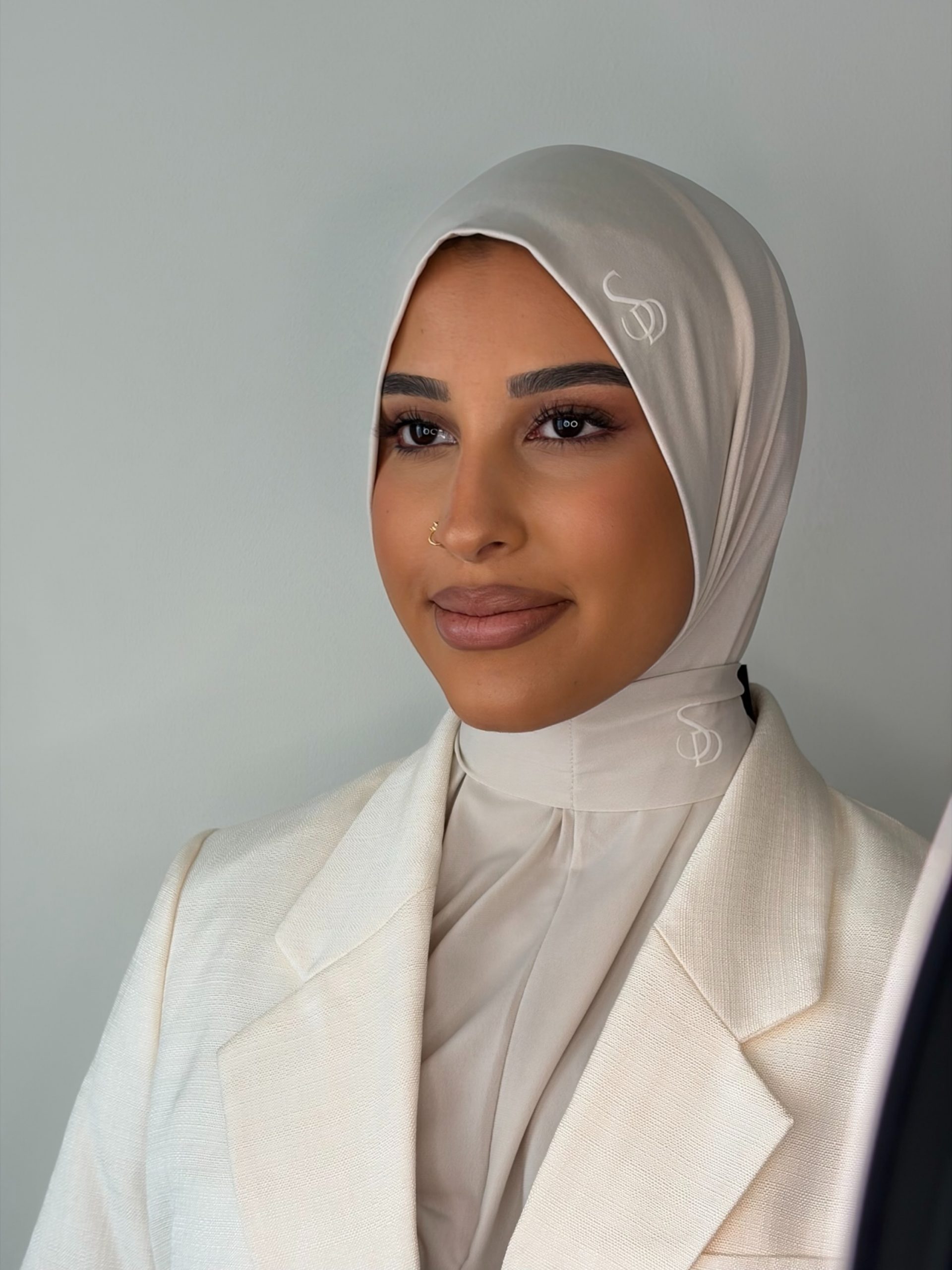 Cagoule SD à boutons en Jersey Premium de couleur beige crème, idéale pour un port quotidien pratique et rapide. Tissu doux, léger et opaque pour un confort optimal toute la journée.