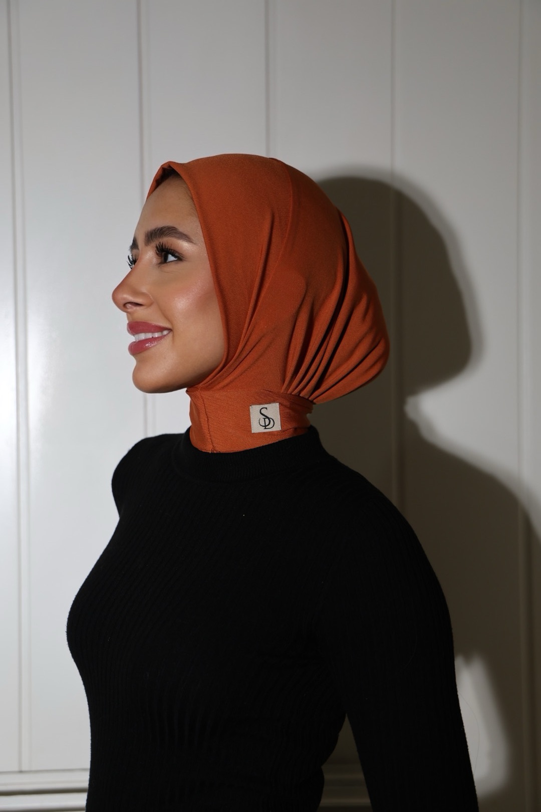 Cagoule SD à boutons en Jersey Premium de couleur Terracotta, idéale pour un port quotidien pratique et rapide. Tissu doux, léger et opaque pour un confort optimal toute la journée.